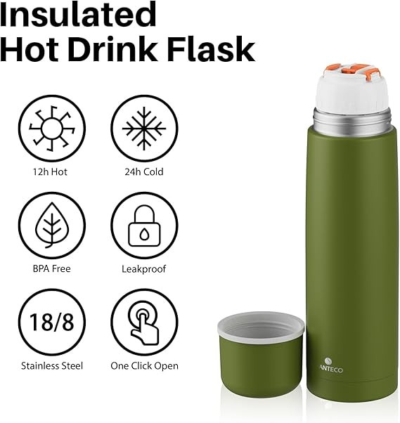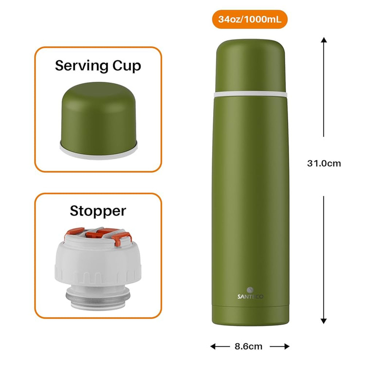 فلاسک دوجداره سانتکو 1000 میلی لیتری مدل VISEU سبز